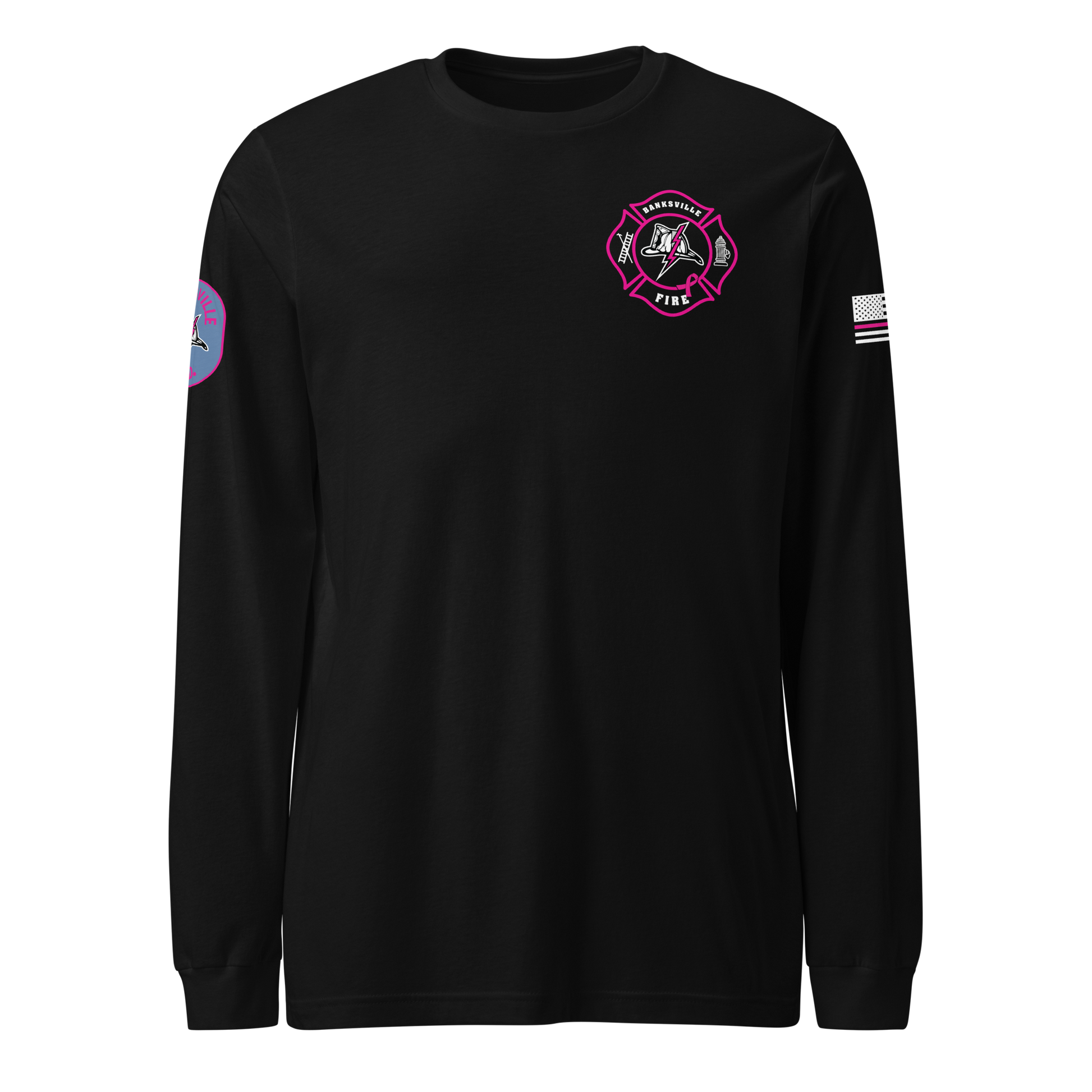 Frankโs WearHouse is proud to partner with Banksville Independent Fire Department to create a special edition Breast Cancer Awareness shirt. This bold pink redesign of the departmentโs patch and lightning bolt was made exclusively to support the cause and show unity within the firehouse.
