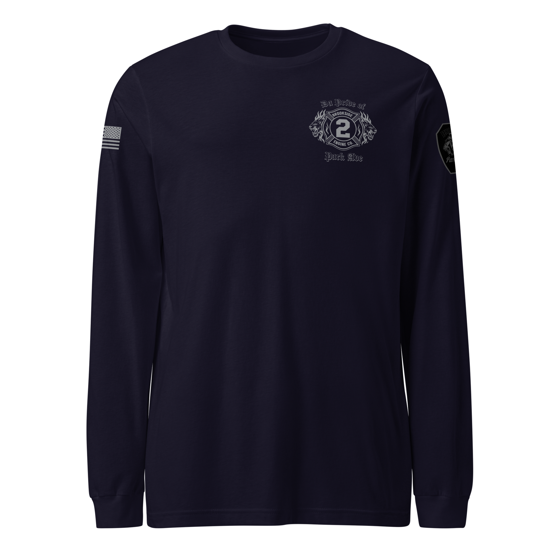 This special Subdued Edition design is created exclusively for active members of the Uniondale Fire Department, Engine Company 2. Featuring a more understated, sleek look, this design embodies the strength, unity, and pride of Engine Company 2 in a bold yet subtle way. The Subdued Edition highlights the essence of service and commitment without the loudness of traditional designs. Membership verification, including badge number confirmation, may be required prior to processing your order. Unauthorized purchases will be canceled and refunded immediately. Available in black and navy blue. All sizes are the same price — no upcharge.
